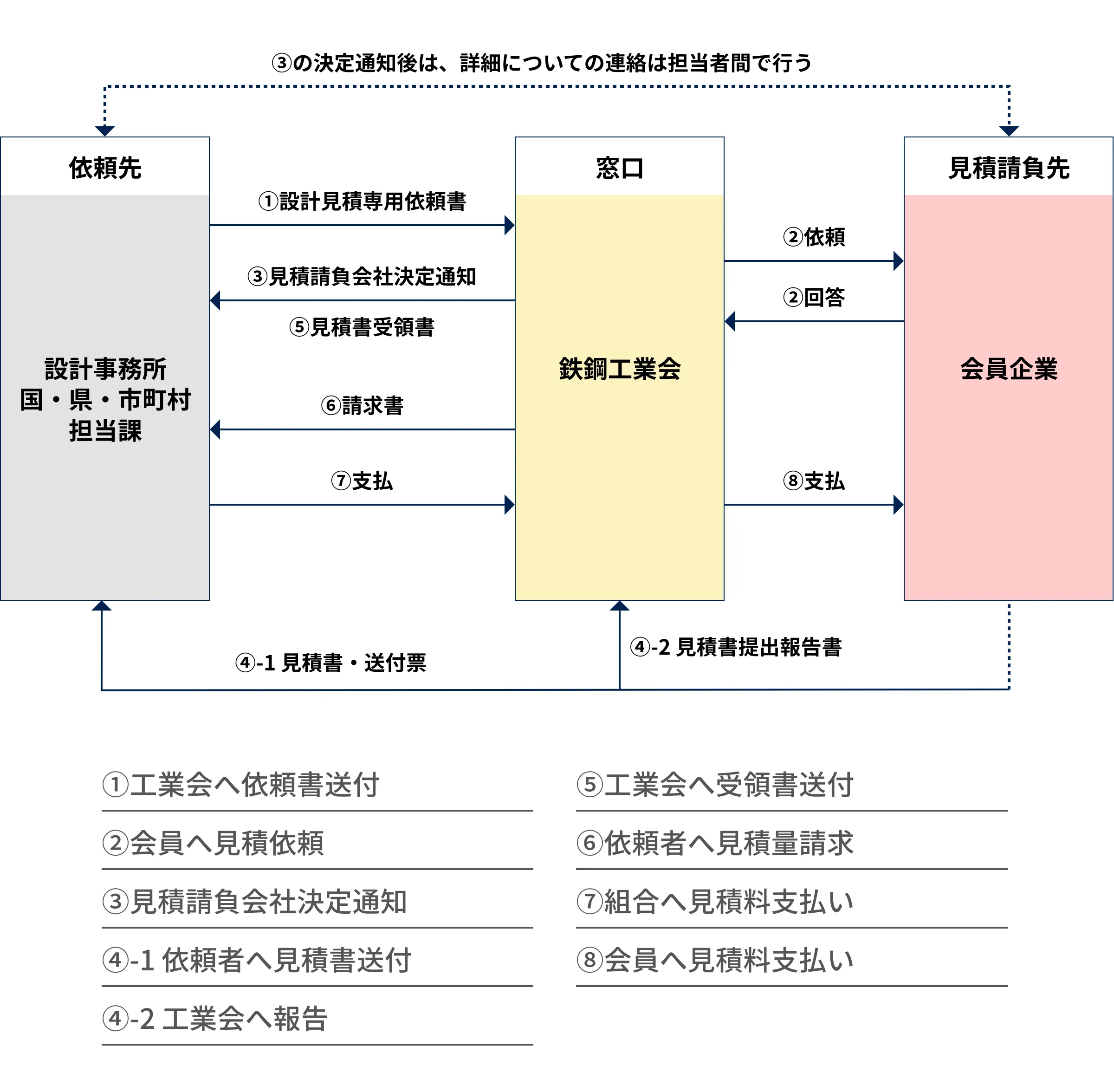 - 見積請負会社決定後は、詳細についての連絡は担当者間で直接行ってください。
